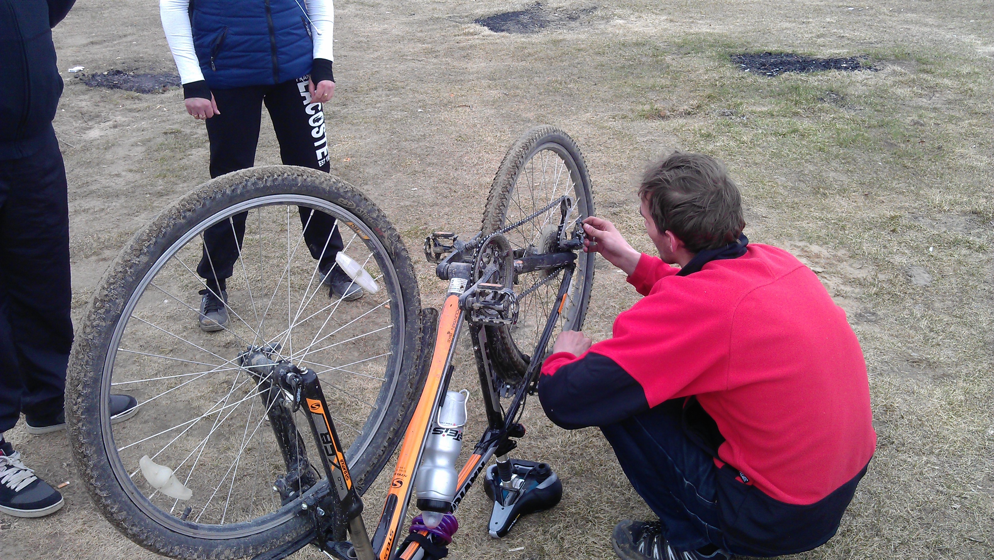 А началось всё ремонта. По этой причине выезд немного задержался. Потом был второй ремонт уже на нулевом. Я наскочил на яму, думал всё хана дискам восмёрка обеспечена. Но отделался лёгким испугом, пробил заднее колесо. Фото нет сам себя фоткать не научался ;-) Был и третий ремонт мелкий Аське переклюк задний настраивали. Надо ещё рубахи у тросика промыть забило. Ну ещё пару фоток для затравки :-) С погодой сегодня повезло ехать было довольно комфортно, чутка бы ветер по слажбе было бы совсем хорошо. Дорога спокойна машин минимум. Даже на поезд проезжающий переезд успели помахали Ерохе может увидел Выезжая с барвихи на встречу попалась ещё одна группа из 5 велосипедистов, не мы одни катаем. Кому интересна ссылка на трек. https://docs.google.com/file/d/0B6xBhHUDocG...WF1Xy1WOFk/edit -------------------- |