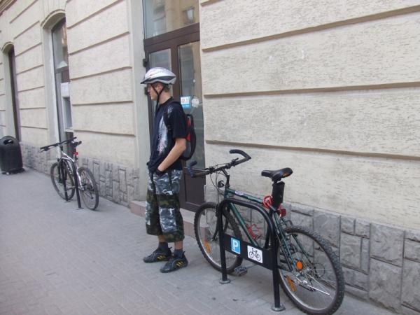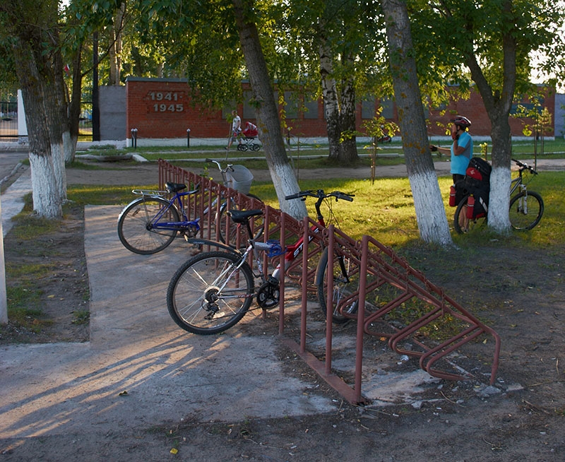 ... добро на оборудование велопарковки, ...требуются чертежи для мастеров. ...оптимальные размеры стойки для крепления вела ... Что учесть? ... %) Избранное из того, что есть с собой см. в файлах вложения. Идеального варианта в готовом виде не представлено, но прототип в деревянном виде можно потрогать руками. Мнение: Упор только для переднего колеса неприемлим, т.к. нет опоры для несущего элемента (рамы), а спицы не расчитаны на боковое давление (при порыве ветра ...). Сообщение отредактировал bazun - 4.7.2014, 15:14 -------------------- После нас сегодня чище, чем вчера. Тело должно двигать себя само.