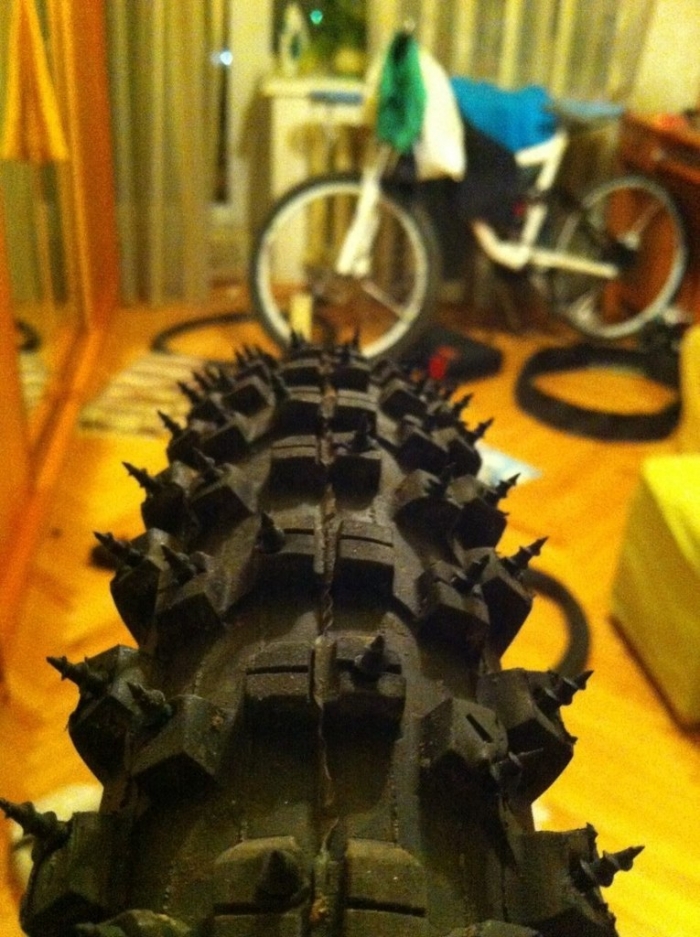если вел дома хранить, пол портится Не говори, мне уже от моей прилитело за коцаный пол =) с такими большими шипами исключительно по льду катать, а на асфальт уже не сунешься Ну да они и предназначены для гонок по льду. что то у первой шипы какие то не ровные .. видимо кустарные Точно заводские, ток изрядно юзаные =) Вот кустарщина -------------------- |