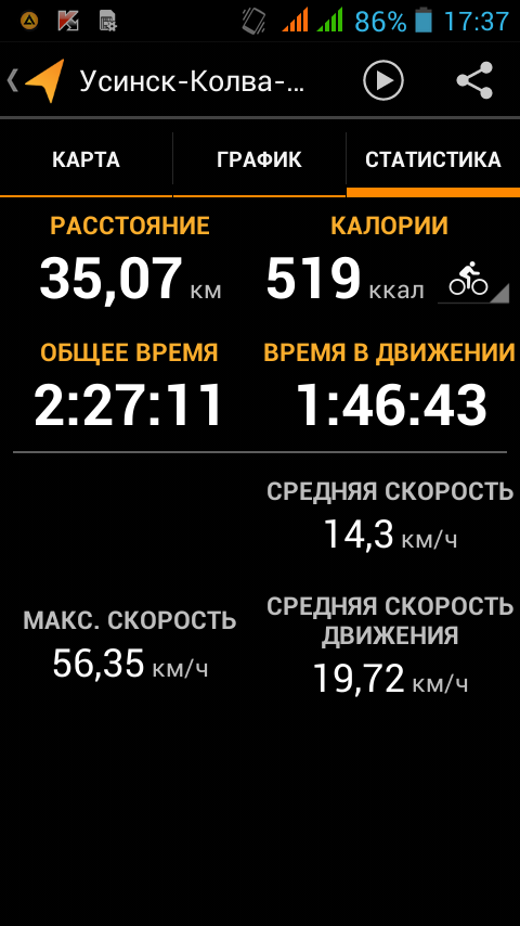 мне кажется врет немного gps где мы до 56 км час разгонялись не помню по ветру гнали что ли ))) у меня по велокомпу 37 км Разумеется врёт. Но эт я так уж кинул хотябы примерно сорентировать народ, комп то мой меня подвёл заглючил на пол пути. Кстати не вкусе как его обнулить до заводских ? Разумеется врёт. Но эт я так уж кинул хотябы примерно сорентировать народ, комп то мой меня подвёл заглючил на пол пути. Кстати не вкусе как его обнулить до заводских ? А по ветру мы шли после поворота на Парму, там у меня комп ещё работал и выдавал за 30-ку далеко. Глянь на своём максималку. -------------------- |