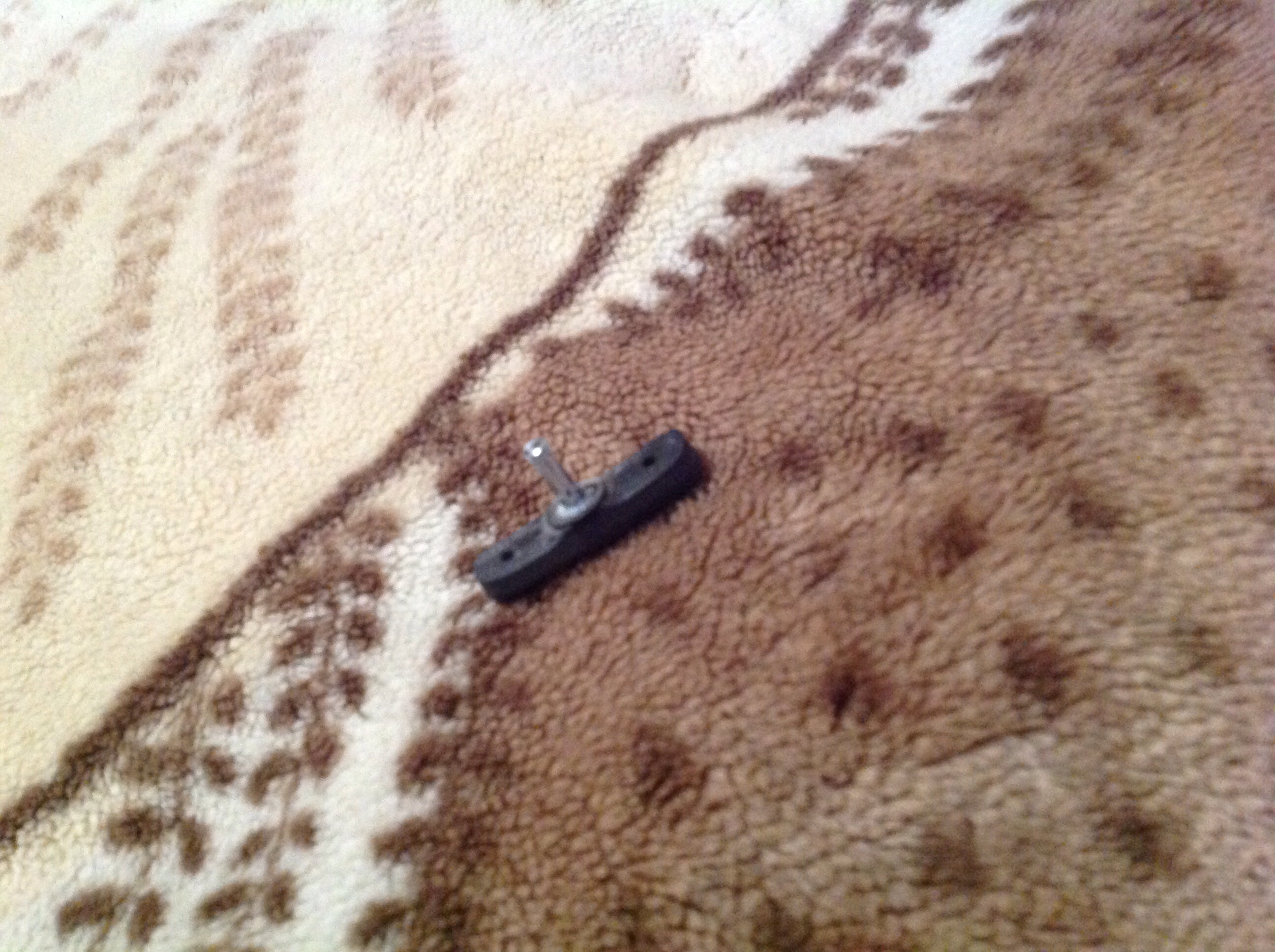 Плохо видно, короче на резьбе переломился (мать его так, вот что за метал ?? пластмасса пометаленная, падлы, китаёсов ненавижу !!! ), где тормозные колодки на велик взять ? Блин, с машиной проще ))) |