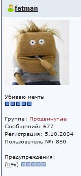 ![]() Старожил ![]() ![]() ![]() ![]() ![]() ![]() ![]() Сообщений: 1629 Группа: Пользователи Карма: 0/0 Регистрация: 18.11.2001 |