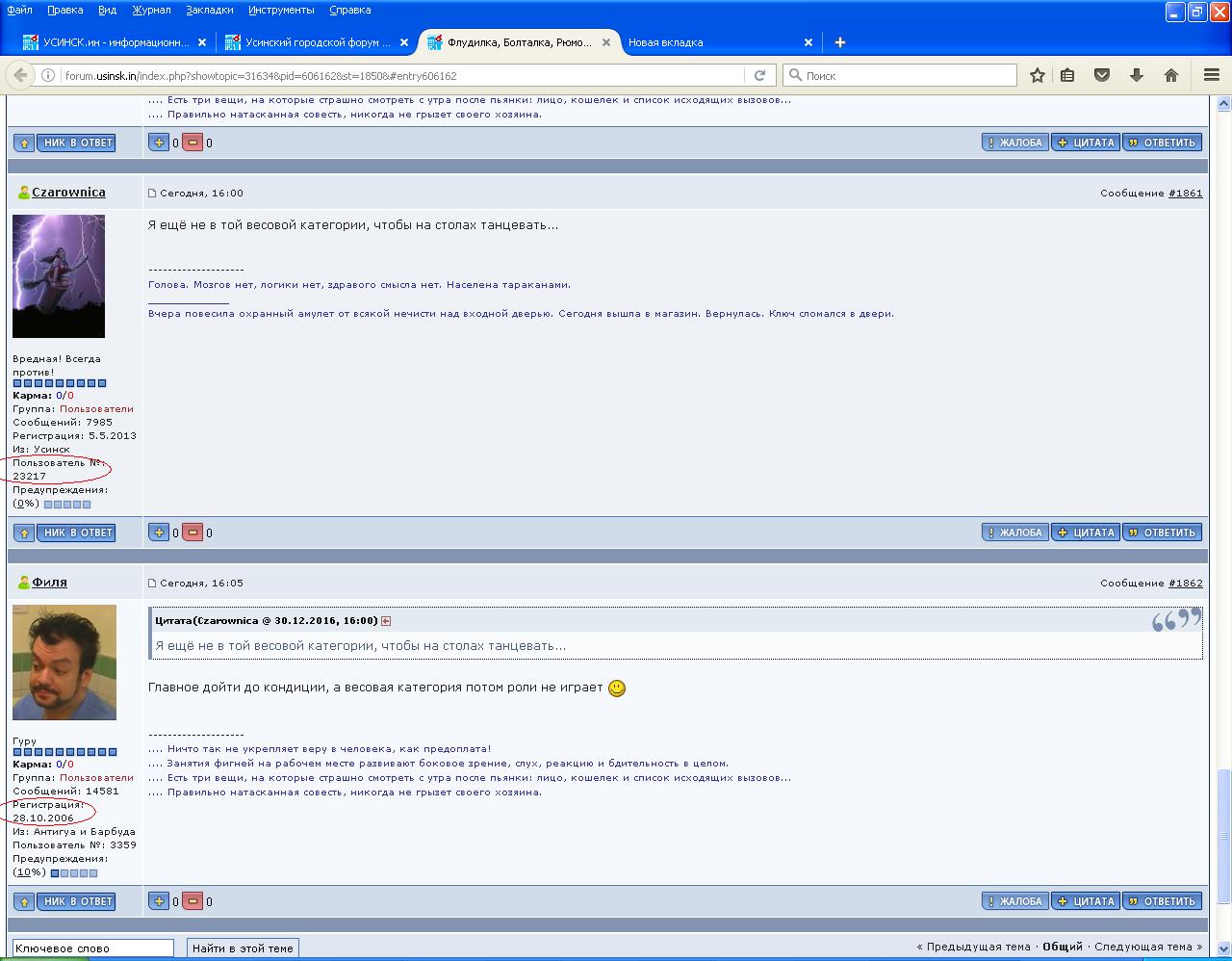 1) у Czarownica не поместился в строку 5-значный номер пользователя 2) у Фили не поместилась дата регистрации Предлагаю сделать немного шире блок с инфой о пользователе, чтобы всё умещалось в одну строку. Также можно совсем убрать из блока инфы о пользователе строку "Из: Усинск". |