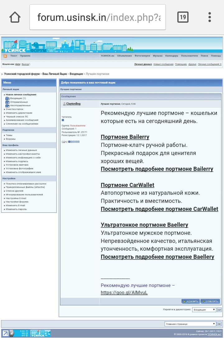 Раз уж пошел разговор: Какие ссылки (на какие сервисы, разделы) необходимо добавить в мобильную версию сайта usinsk.in ? Прямую на форум. Друзья, давайте уж не будем делать подписи по полтары страницы. Право дело листать неудобно. Особено на телефоне. -------------------- И только за жабры подвешенный ерш