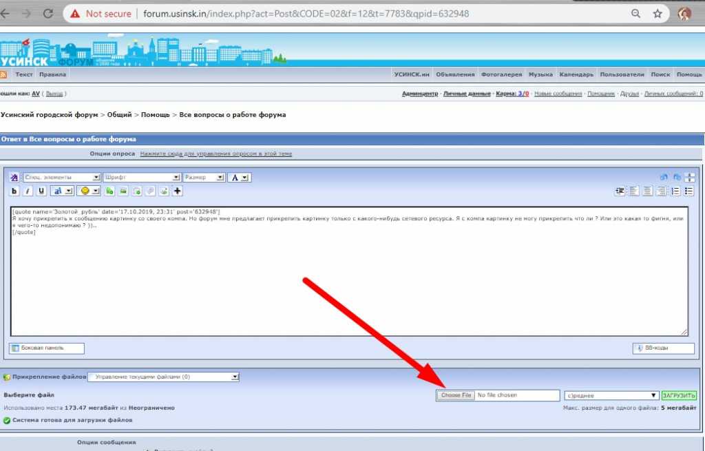 Форум в таких случаях молчит, никаких сообщений не выдает, и не сообразишь, в чем причина( Будем разбираться. Тут: http://forum.usinsk.in/index.php?showtopic...st&p=631748Спасибо, Алена! -------------------- "Я люблю этот город, но зима здесь слишком длинна" (С)