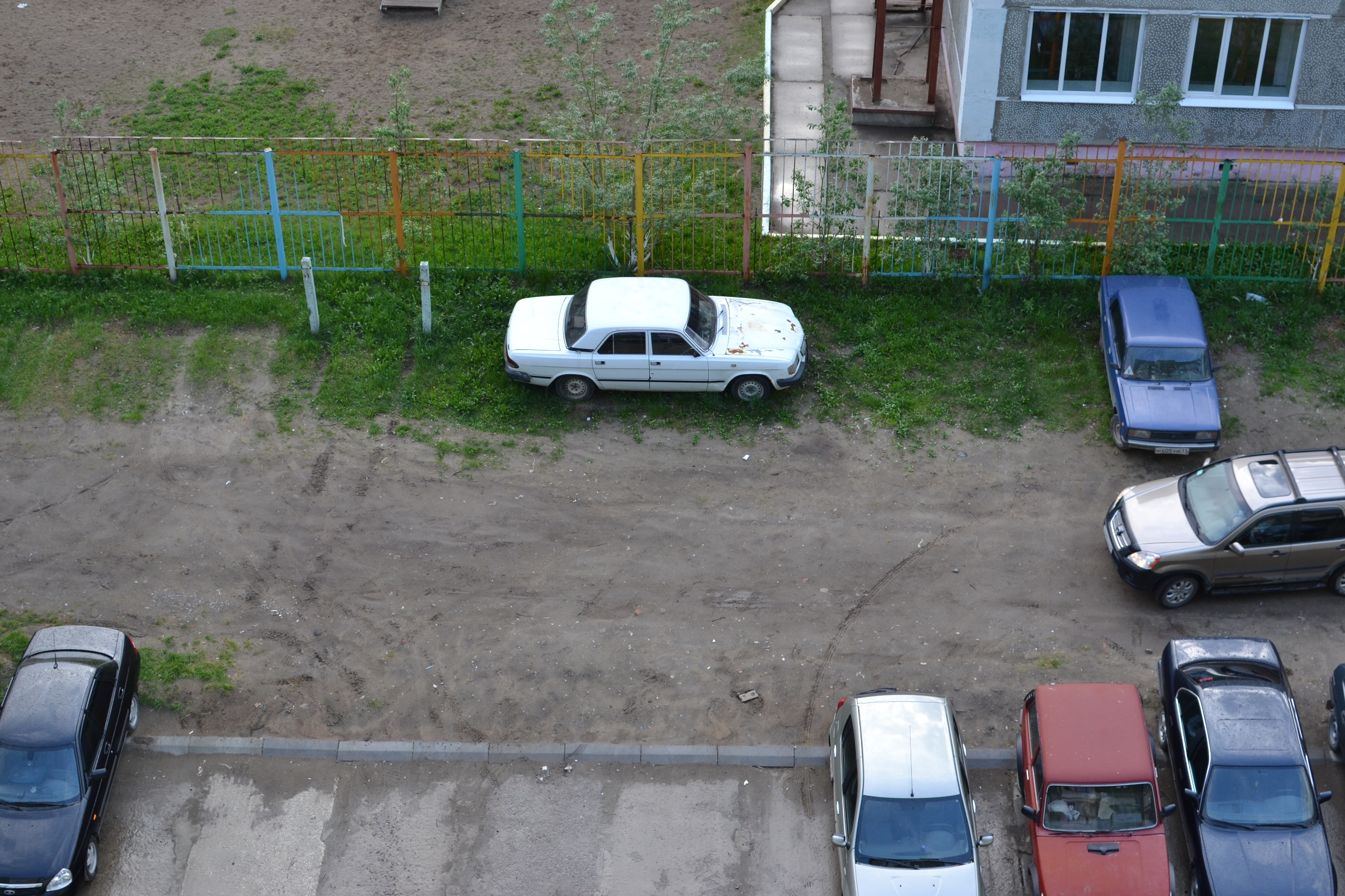 Припарковался возле сада хоть меж колесами лезь, чтоб не обтираться об грязный фургон, особенно те кто на санках и буране.