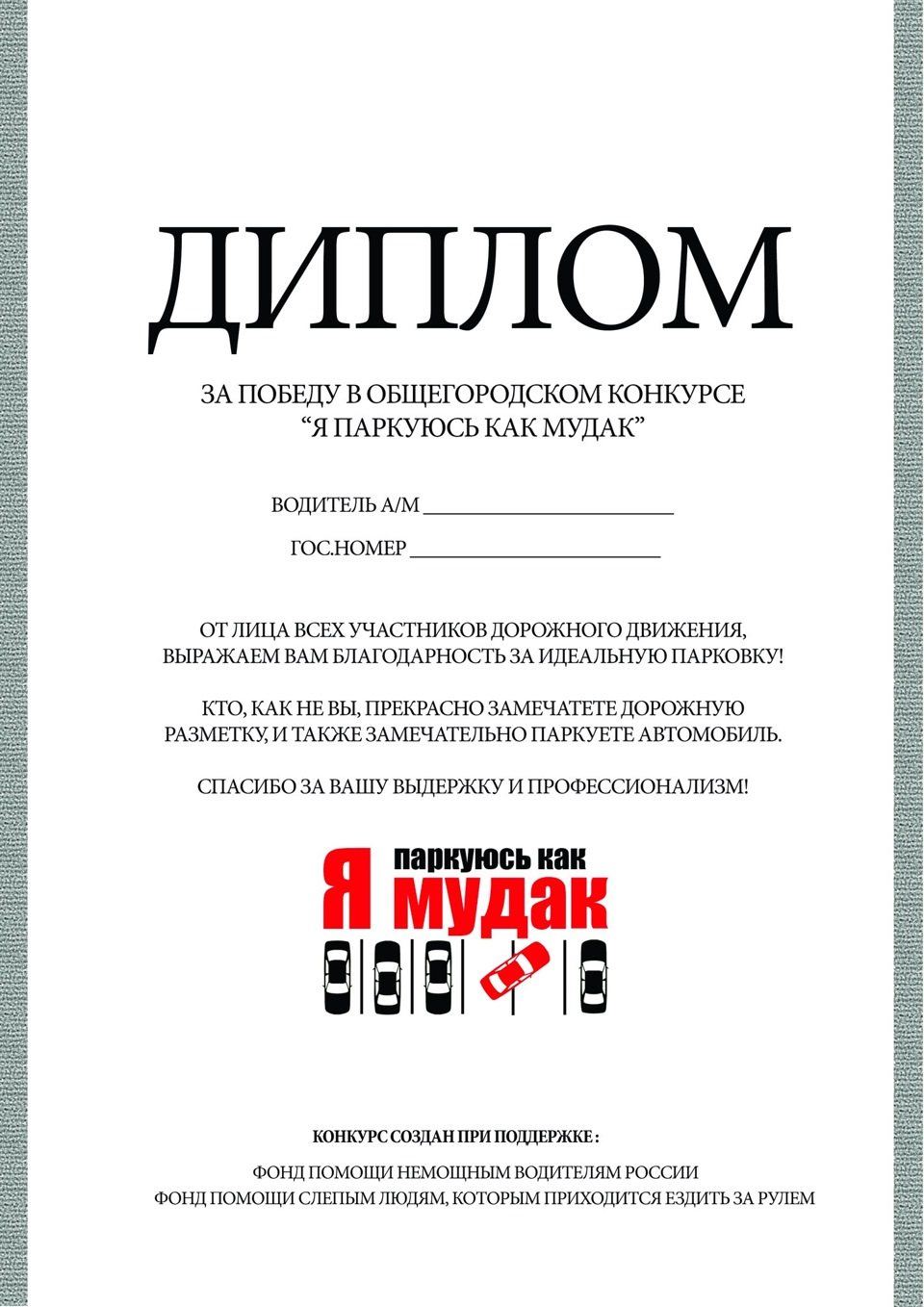 лучшим парковщикам нужно выдавать дипломы.