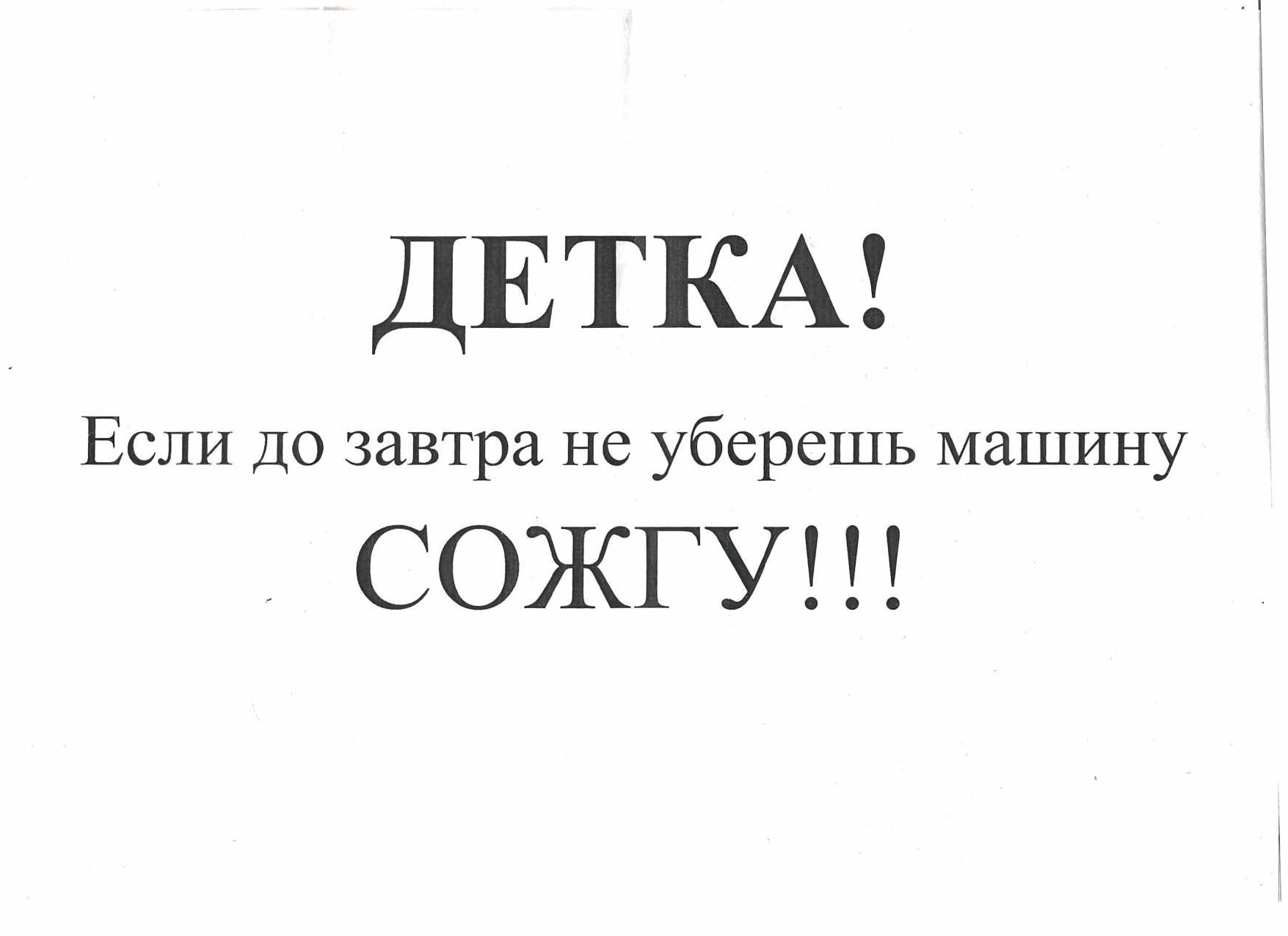 Мне за неделю уже второе письмо счастья под дворники подсунули, интерестно где они увидели детку в 39 лет? Сегодня отнесу оба листа участковому, тем более догадываюсь кто пишет.