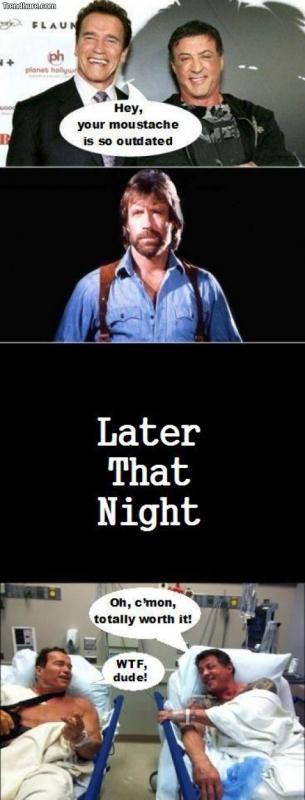 продолжение чего не выложил? где шварц и сталоне побитые и в лейкопластыре лежит на больничных койках и написано, что классно повеселились )))