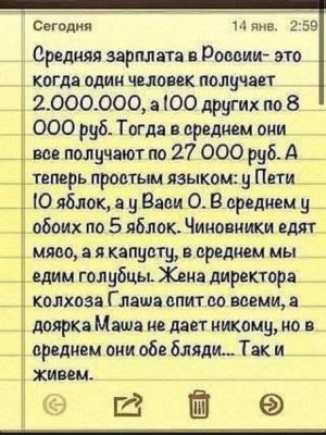 .... Занятия фигней на рабочем месте развивают боковое зрение, слух, реакцию и бдительность в целом. .... Есть три вещи, на которые страшно смотреть с утра после пьянки: лицо, кошелек и список исходящих вызовов... .... Правильно натасканная совесть, никогда не грызет своего хозяина. |