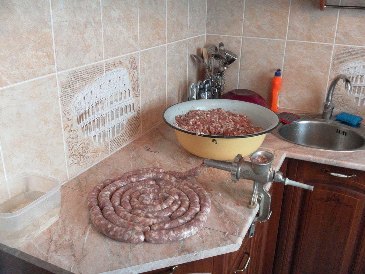 Там же у них есть и насадки и натриевая соль для изготовления сыровяленных и сырокопченых колбасок. 1 пачки кишок хватает на 5 кг мяса. По себестоимости колбаса получается примерно 300-400 руб кило. Главное достоинство домашней колбасы, это то что знаешь из чего она сделана))) Рецепты и описания есть на сайте. http://kolbaskidoma.ru/ -------------------- Настоящему индейцу завсегда везде ништяк!