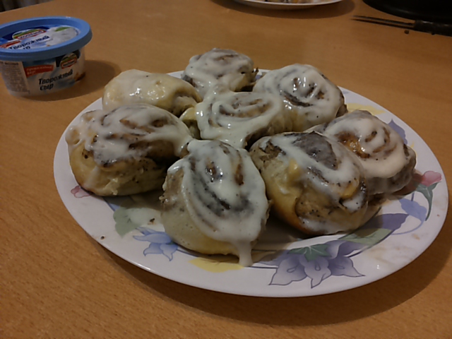 Синнабоны какие у меня получились)))). Супер булочки)))). В начинку еще мака насыпала (нравится мне он очень))) . Рецепт вот отсюда взяла: http://andychef.ru/recipes/cinnabon/ .. прямо до грамма блюла