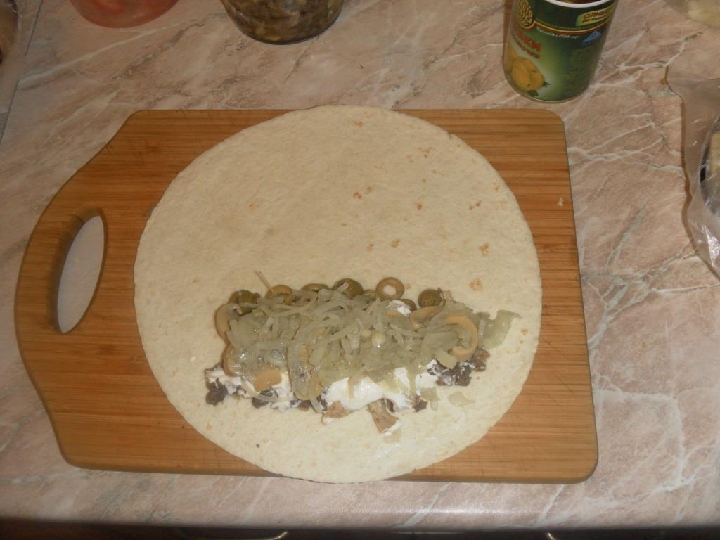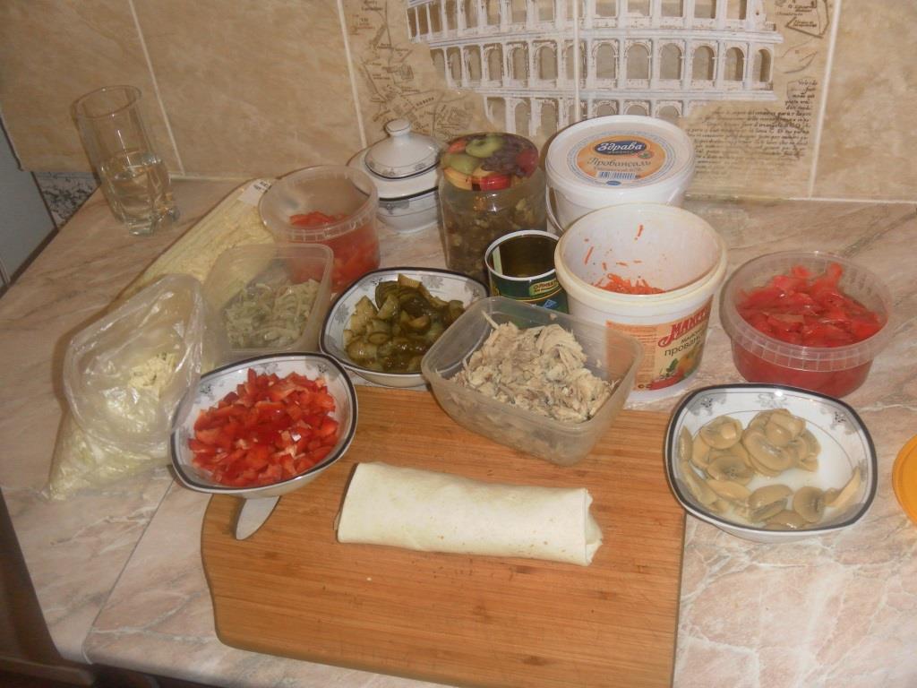Шел домой, заглянул в магазин, все ингредиенты есть. Основа - мексиканская лепешка (Провиант). Далее по вкусу и желанию, как и пиццу.(все что есть в холодильнике) Сыр Моцарелла не принципиально, соусы тоже любым майонезом или томатным по вкусу. Я люблю разогретую. Первую сделал как стандартную шаурму: жаренное мясо, маринованный лук и огурчик, морковку по корейски, китайская капуста майонез. Остальные что фантазия позволит. -------------------- Настоящему индейцу завсегда везде ништяк!