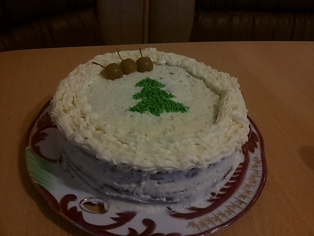 "Прошлогодний" торт готов А елку чем сделала? -------------------- Предчувствуя неладное, Му-му еще с вечера наелась пенопласта....
