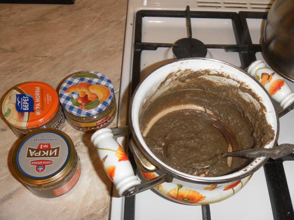 Наверное будет интереснее охотникам, хотя можно сделать из любой печенки или просто мяса. И так берем печень, у меня было примерно грамм 250. Отвариваем и солим. Затем печень вынимаем из бульона (его ни в коем случае не выливаем). Печень молим в блендере совсем в мелкую кашу, затем высыпаем обратно в бульон. Далее обжариваем лук, лучше использовать для этого сливочное масло или нутряной жир. Жарим до золотистого цвета и мелко молим в белендере. Высыпаем в бульон. Добавляем 3-4 ложки крахмала и включаем газ. Постоянно мешаем и доводим до загустения. Далее горячим по баночкам, банки переворачиваем и укрываем. Хранить лучше в холодильнике когда остынет. -------------------- Настоящему индейцу завсегда везде ништяк!