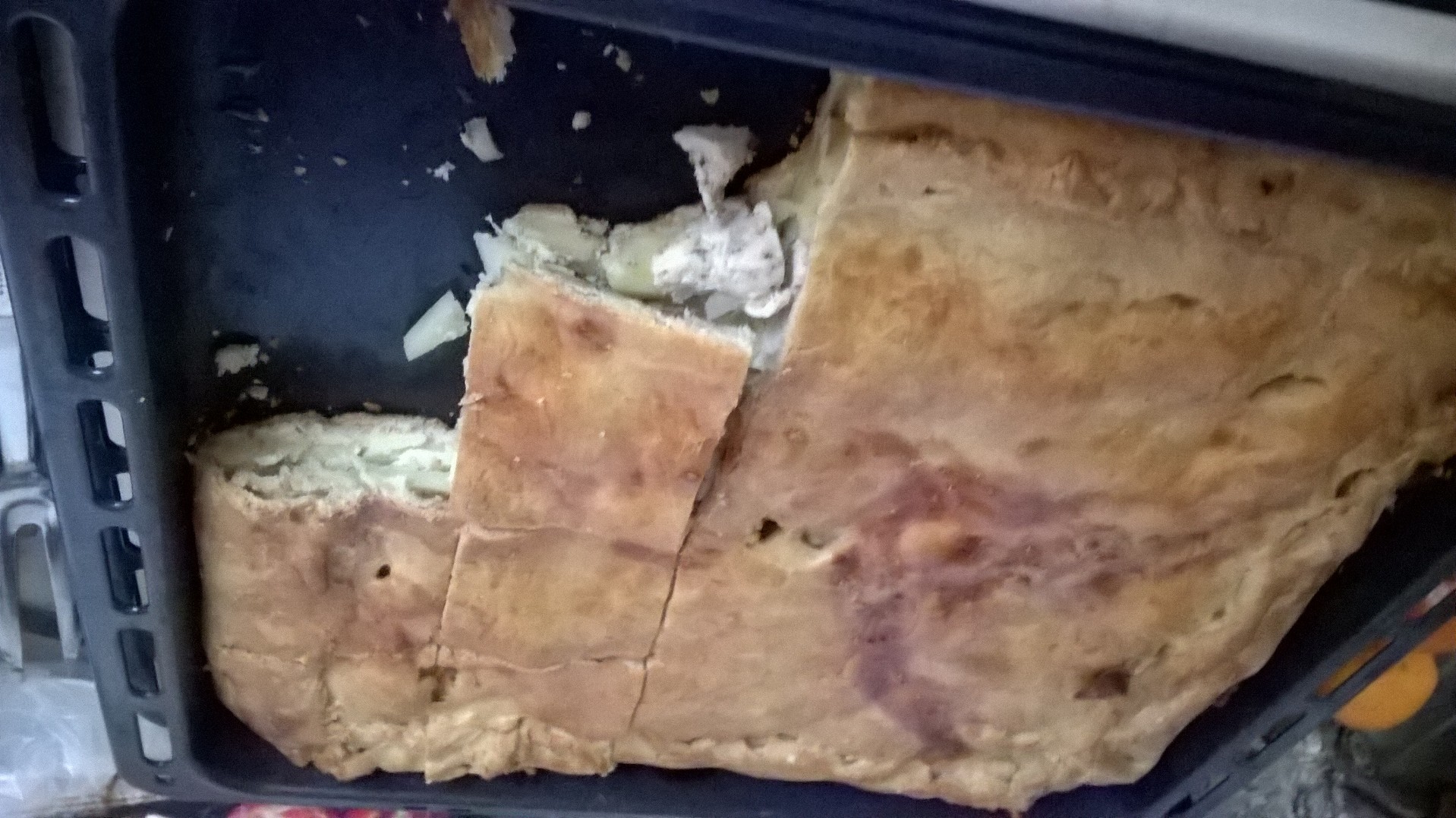 Дров нарубила, воды наносила, печь растопила, квашню замесила. И вот она - традиционная русская кулебяка на 4 угла: грибы в сливках, треска с укропом, яйца с зеленью, семга. Хотела взвесить, но весы больше 3 кг не показывают ))))