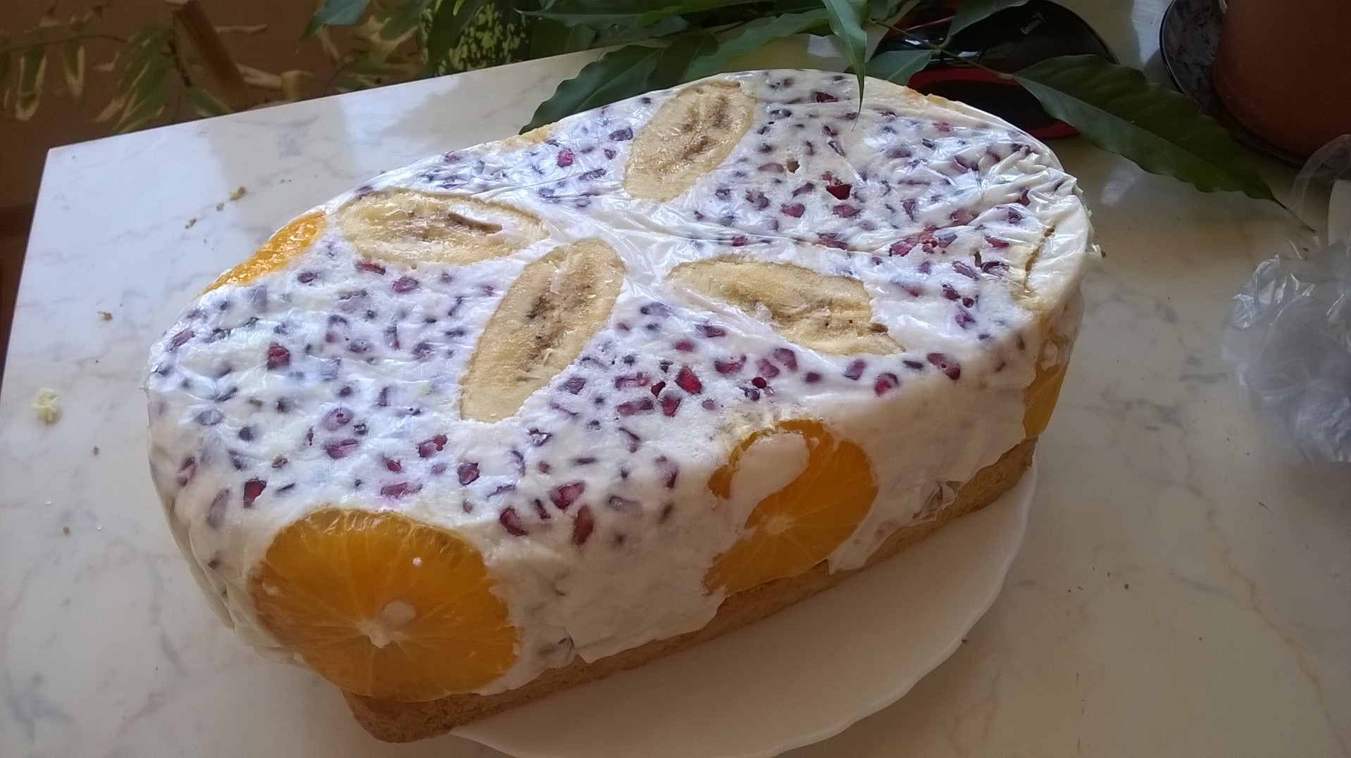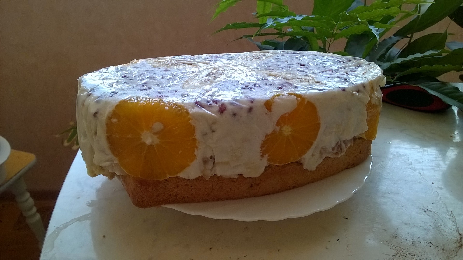Час на кухне, сегодня вот такой красавец порадовал. Вечером пойдём с ним в гости.) Фруктово-бисквитный торт вот по этому рецепту. Уже готовила его, понравился, поэтому и повторяю. |