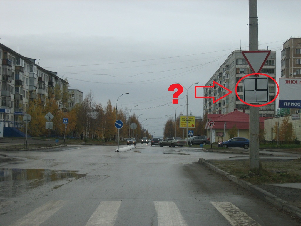 Rost, а направление главной догори на перекрестке для чего тебе висит...? Основной знак главной дороги установлен со стороны 60 лет на молодежную четную. На всех остальных указано направление главной дороги. Или вы считаете одна половинка едет по главной а вы выезжая оказываетесь на второстепенной.? или как .. О том, что там где-то что-то установлено я знать не обязан, я должен руководствоваться знаками, которые я вижу. Выезжая на перекресток, я оказываюсь на главной дороге, также как и те, кто едет по молодежке от нефтяников к сбербанку. Знаков приоритета там нет, и соответственно у меня помеха справа. |